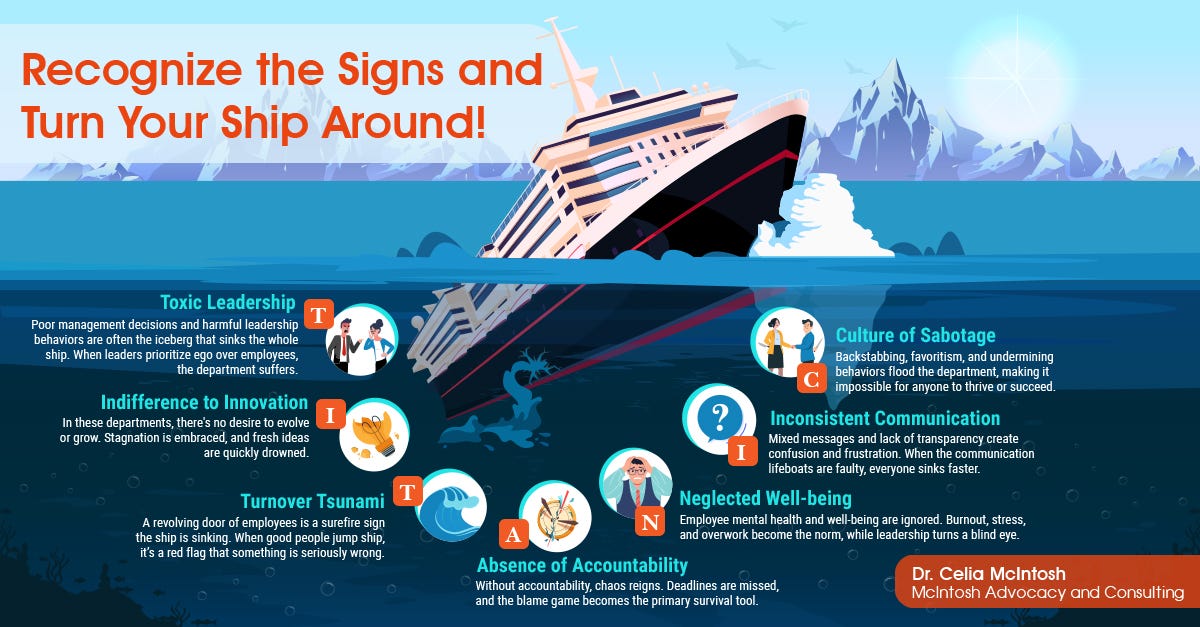 Leaders with a "god complex" believe they can steer the ship through sheer willpower, ignoring the clear warning signs of burnout, disengagement, and high turnover. Instead of changing course, they blame others or double down on their harmful behaviors, pushing the organization further into dysfunction. When toxic leaders are at the helm, it’s only a matter of time before the organization hits its own iceberg—a crisis in morale, performance, or even public relations—that sinks the entire culture.